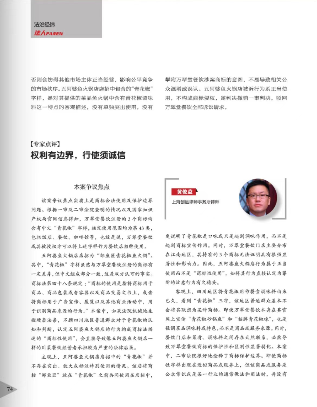 呼伦贝尔辉知简讯 | 辉知队黄俊益律师应“法治日报”旗下杂志邀请,就“青花椒”案发表专家点评